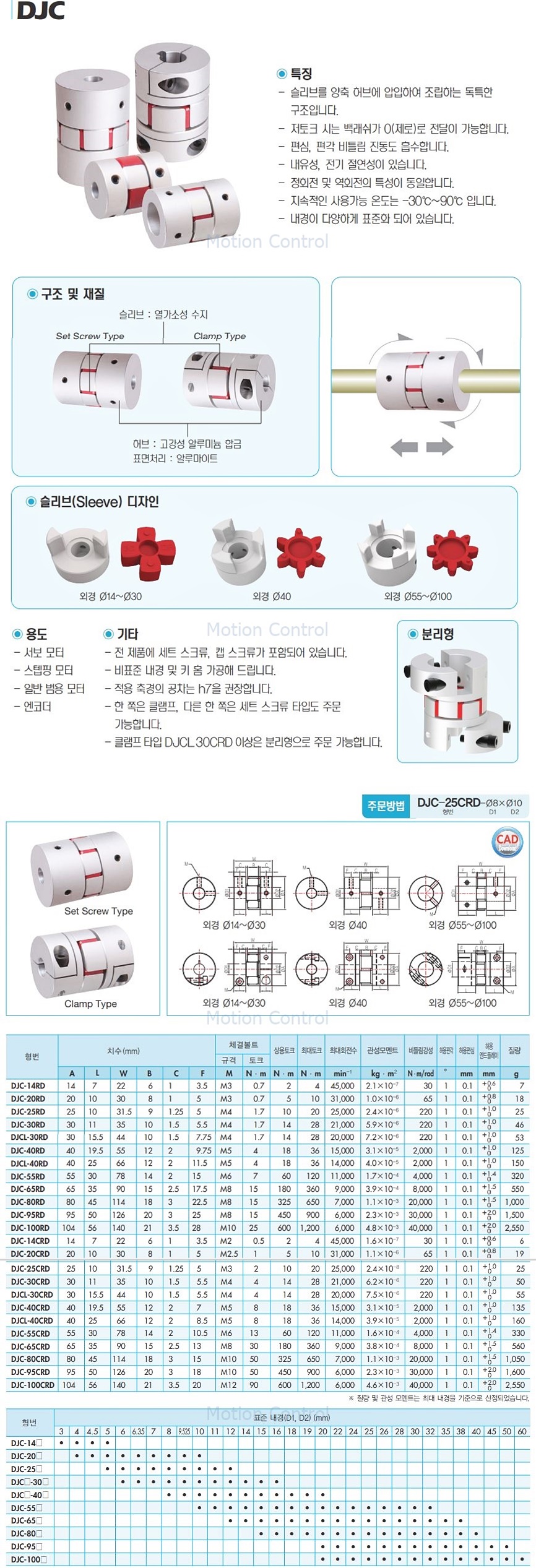 죠커플링 세트스크류타입 DJCL-30RD 국산커플러 모터연결 규격