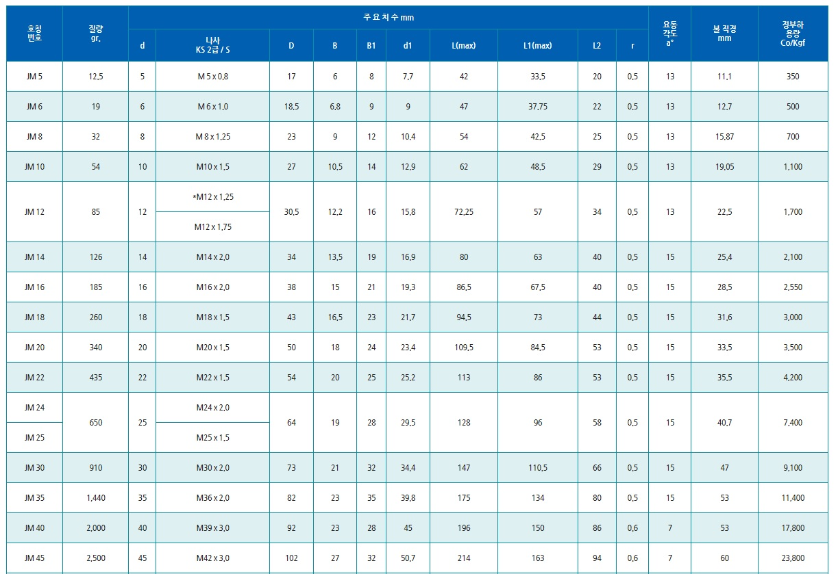 잘만 로드앤드 JM30R JM30L 숫나사(볼트형) M30X2.0 좌나사 우나사
