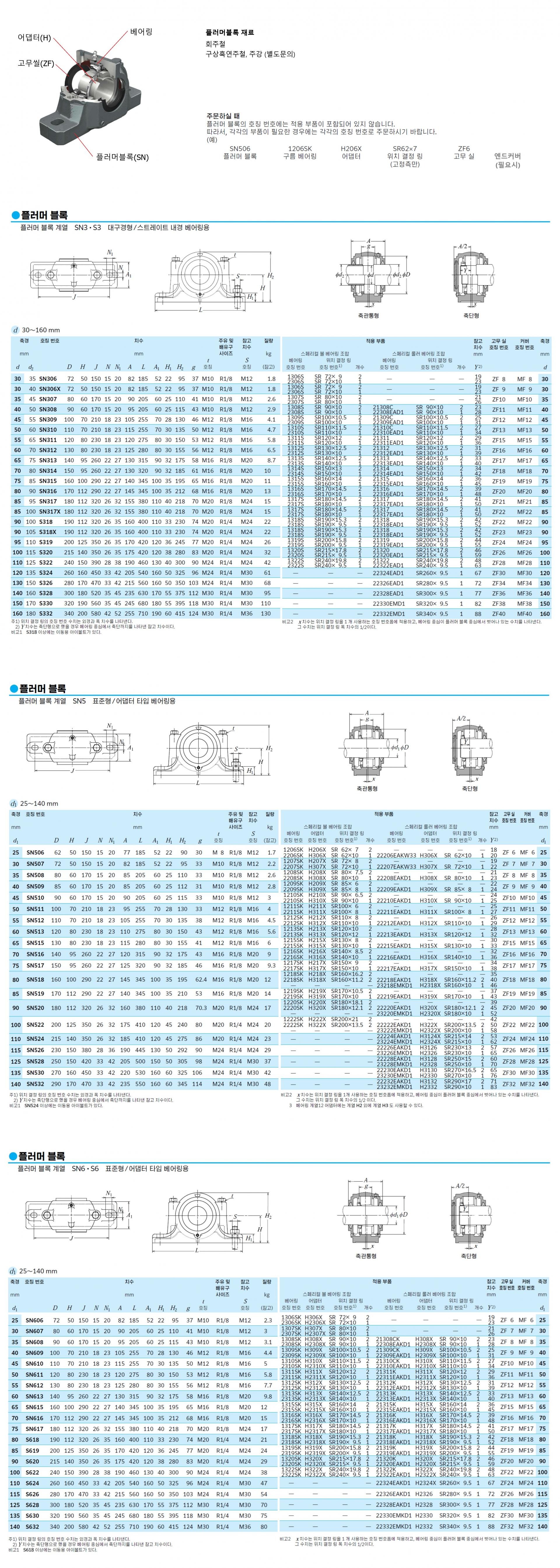 (베어링 1개, 아답터 1개, ZF씰 2개, 위치결정 SR링 2개 또는 1개, 엔드커버 1개)