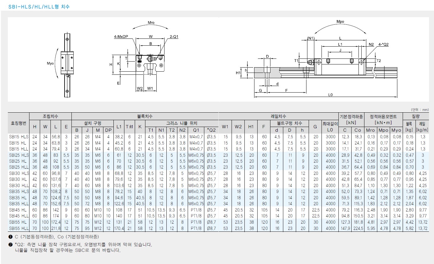 품목명 : SBI 고하중용 리니어레일 시스템(Linear Rail System)