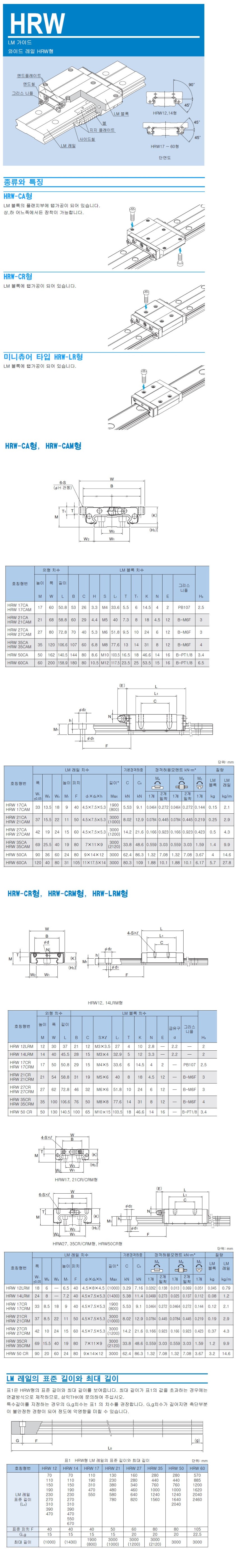 품목명 : HRW 시리즈 (LM가이드 블럭과 레일)