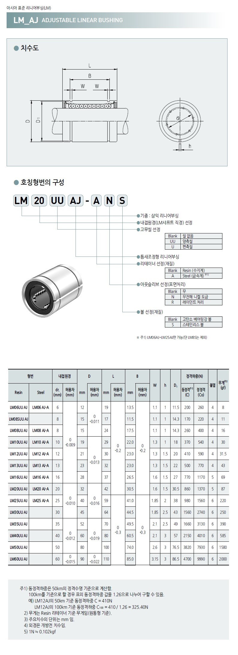 상품명 : 틈새(예압)조정형 리니어 부싱