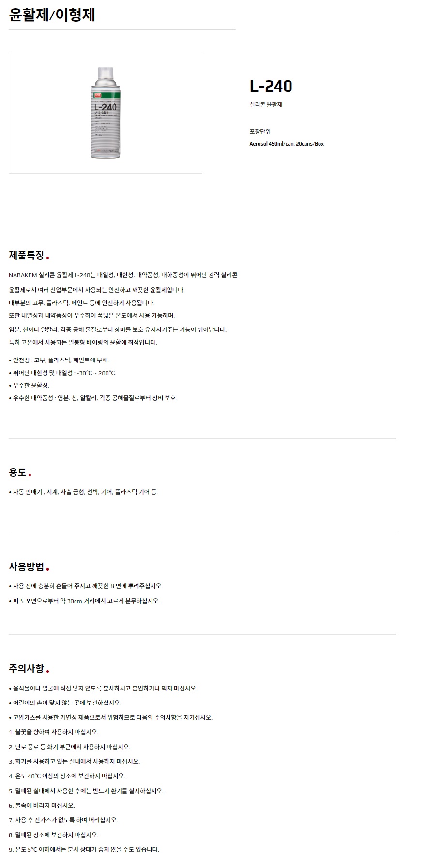 나바켐 L-240 450ml 실리콘 윤활제 NABAKEM