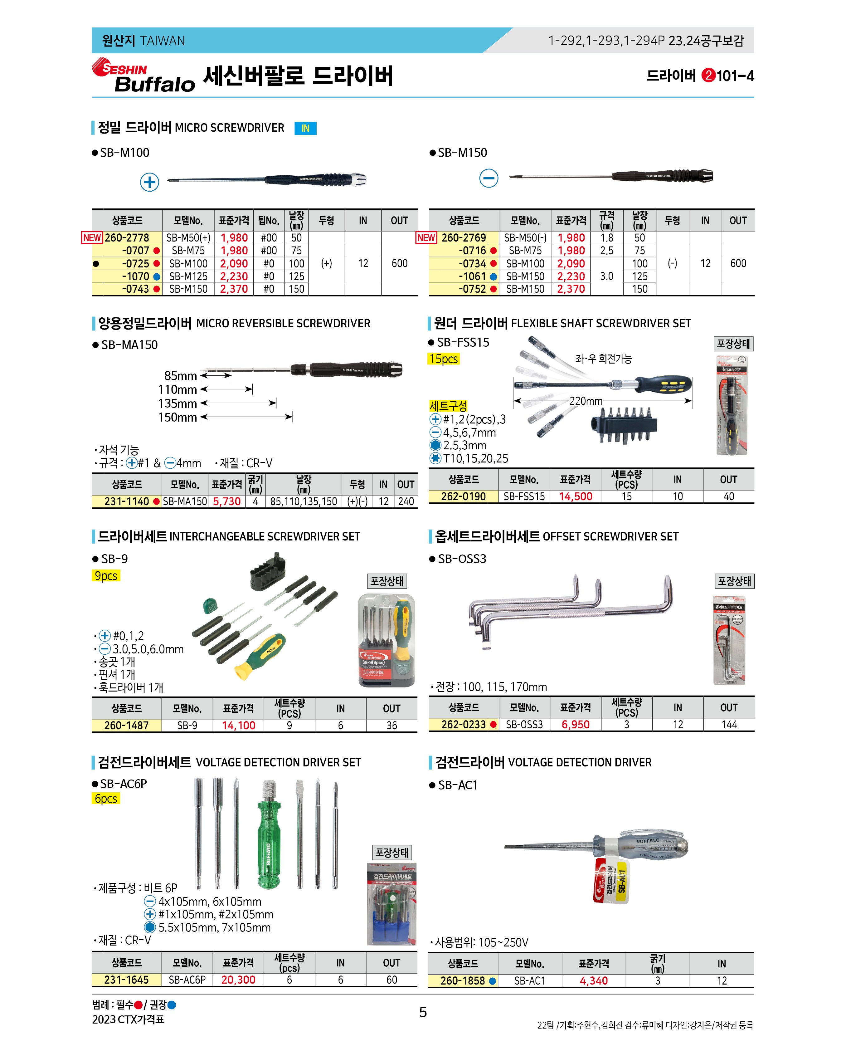 세신 드라이버 정밀드라이버 SB-M50 (-)1.8x50 3EA