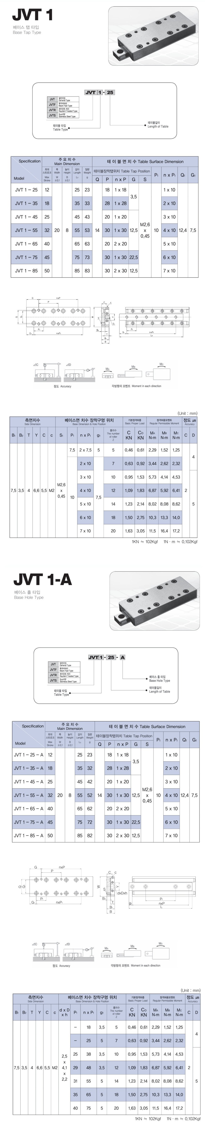 BSQ 국산 JVT1-75 크로스 롤러 슬라이드 테이블 비에스큐