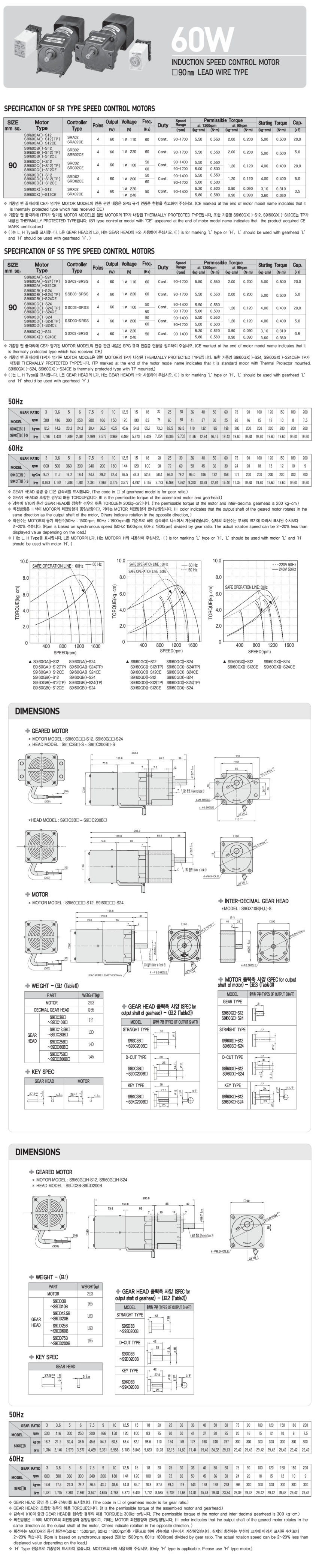 SPG S9I60D-S12 60W 소켓형 스피드컨트롤 인덕션 모터 D-CUT 국내생산