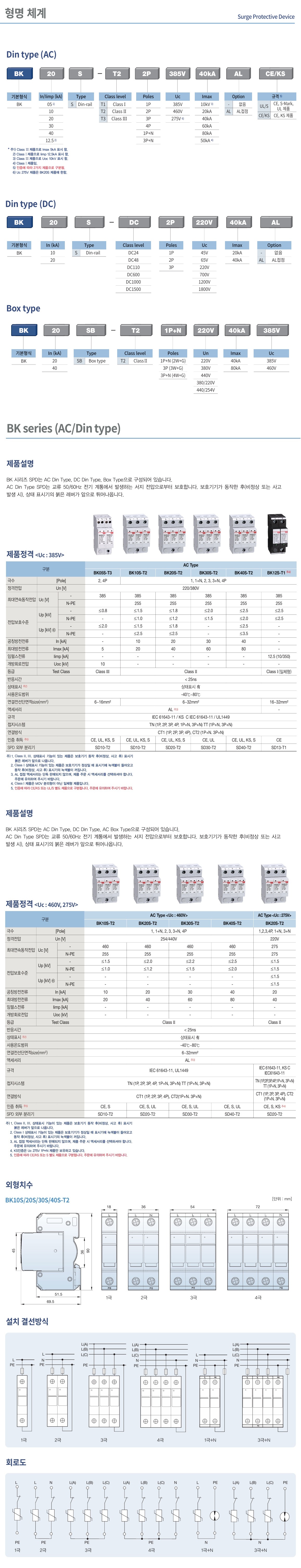 LS일렉트릭 BK20S-T2 3P+N 385V 40kA DIN타입 서지보호기